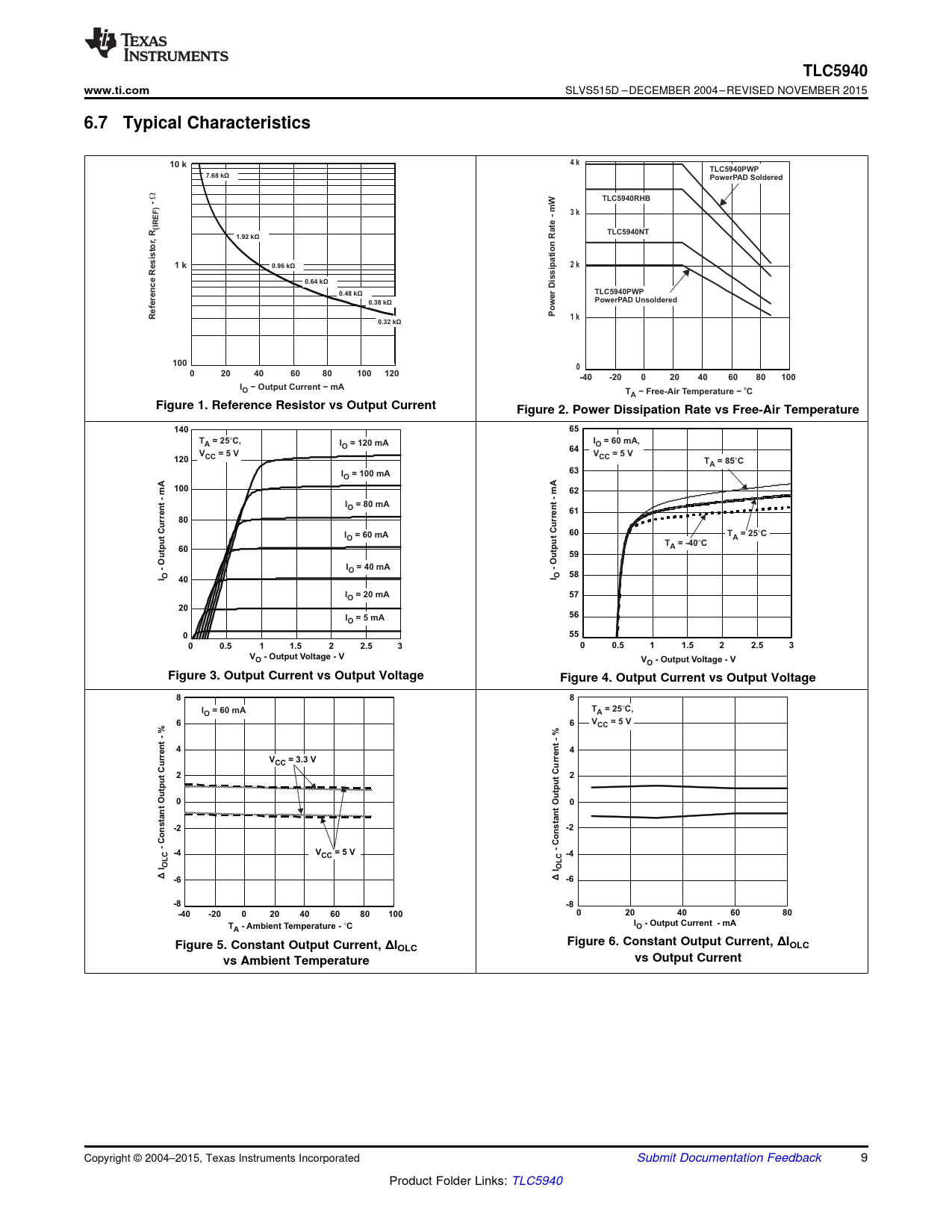 TLC5940. www.ti.com. 6.7 Typical Characteristics. 4 k. 10 k. TLC5940PWP. 7.68 kΩ. PowerPAD Soldered. TLC5940RHB. 3 k. EF) R (I. TLC5940NT