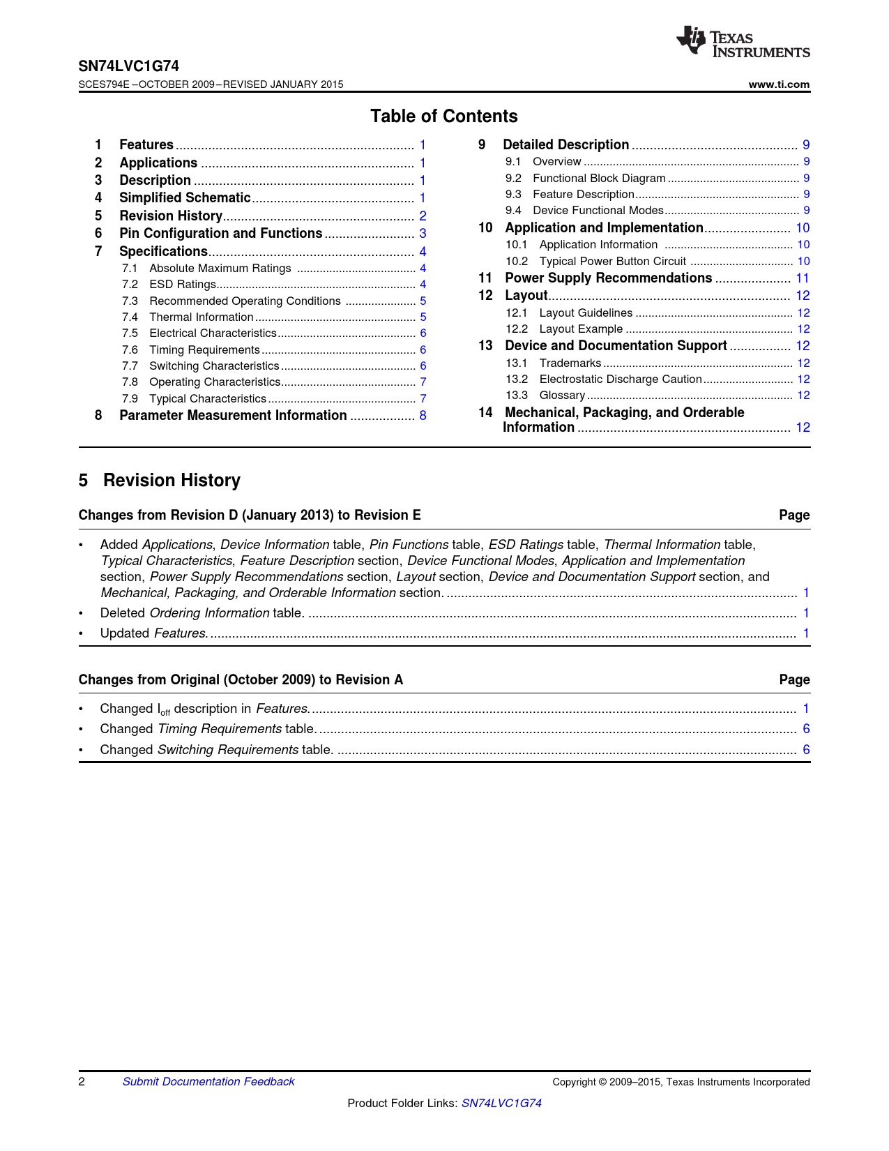 5 Revision History Changes from Revision D (January 2013) to Revision E Page