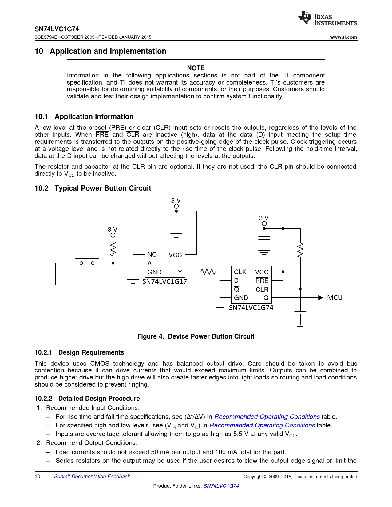 | Pages / Page | 24 / 10 — SN74LVC1G74. www.ti.com. 10 Application and Implementation. NOTE. 10.1 … |