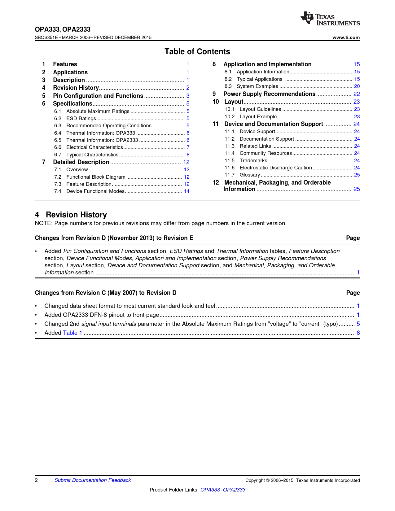 | Pages / Page | 45 / 2 — OPA333. , OPA2333. www.ti.com. Table of Contents. Features. Application … |