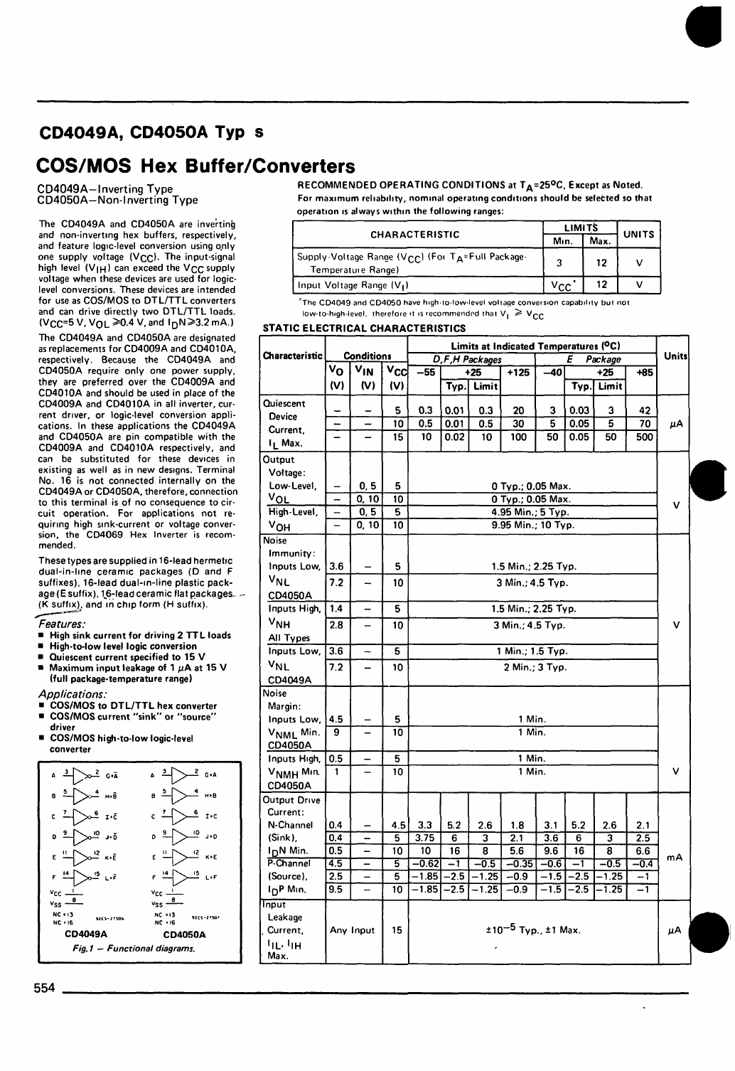 Pages / Page3 / 1 — CD4049A, CD4050A Typ s COS/MOS Hex Buffer/Converters. RECOMMENDED …
