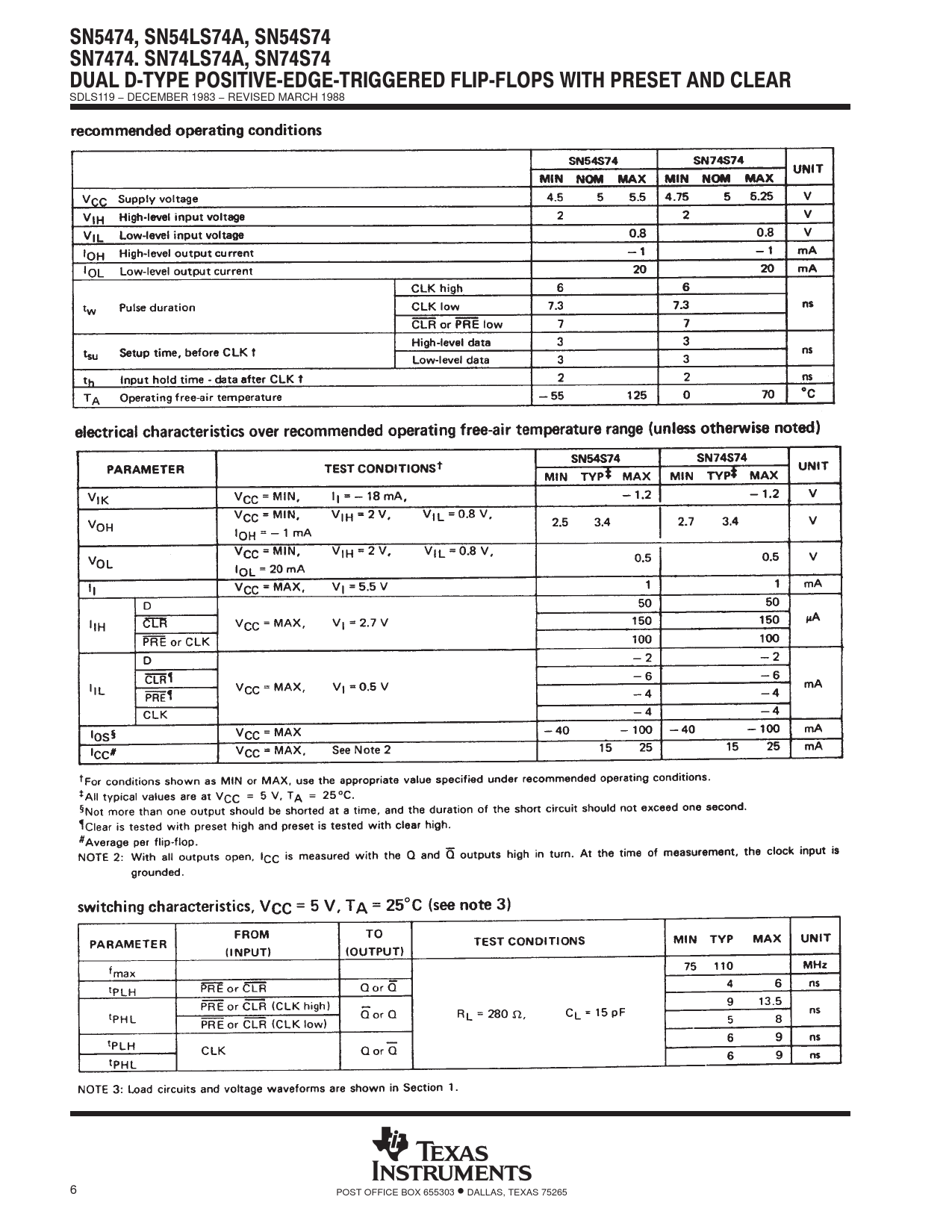 SDLS119. −. DECEMBER. 1983. −. REVISED. MARCH. 1988. 6. POST. OFFICE. BOX. 655303. •. DALLAS,. TEXAS. 75265