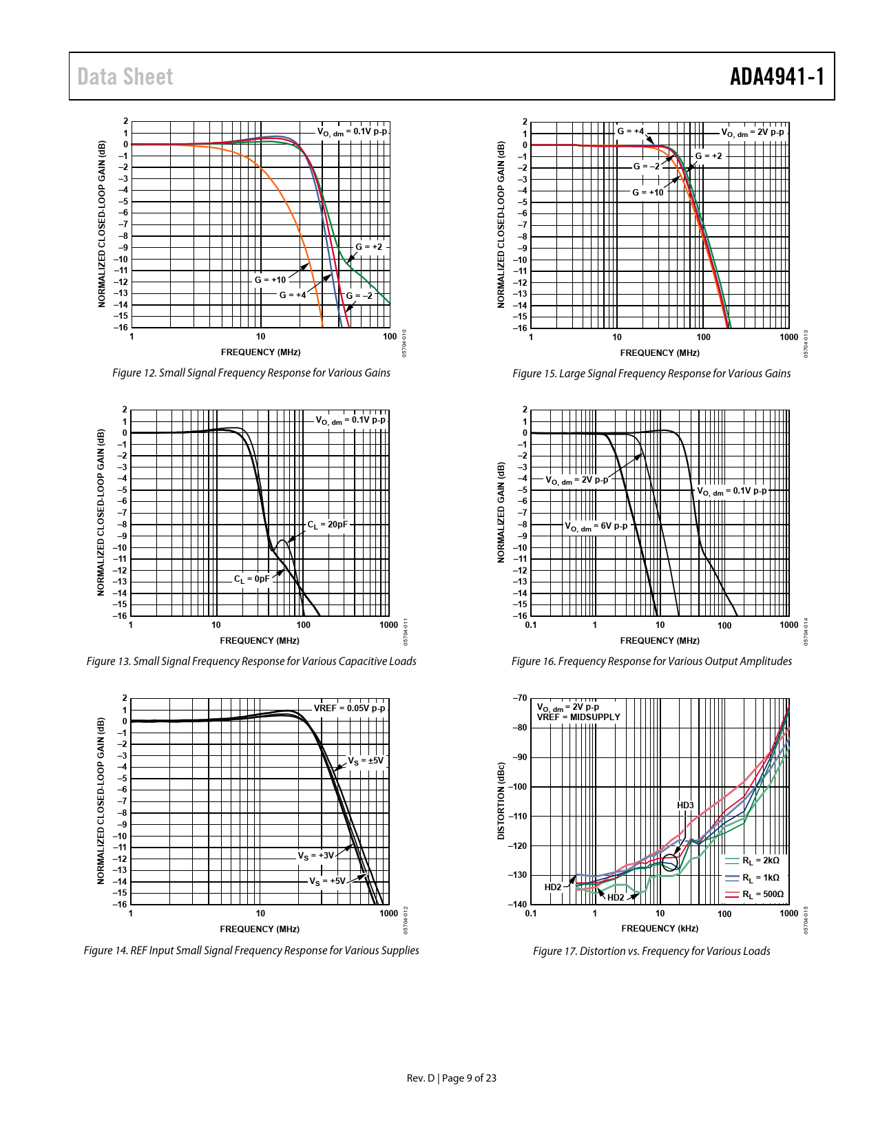 Data Sheet ADA4941-1 2 2 1 VO, dm = 0.1V p-p 1 G = +4 VO, dm = 2V p-p ) B) 0 0 d B –1 d ( –1 G = +2 N ( –2 IN G = –2 AI –2 G –3 GA –3 P O –4 –4 G = +10 O L –5 OOP –5 -L D- –6 D –6 E E S –7 –7 O –8 OS L –8 CL –9 G = +2 C D –9 D E –10 E –10 IZ –11 IZ L –11 AL –12 G = +10 A –12 M RM –13 G = +4 G = –2 R –13 O NO –14 N –14 –15 –15 –16 –16