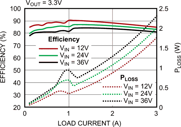 | Efficiency & PLOSS vs. Load Current. |