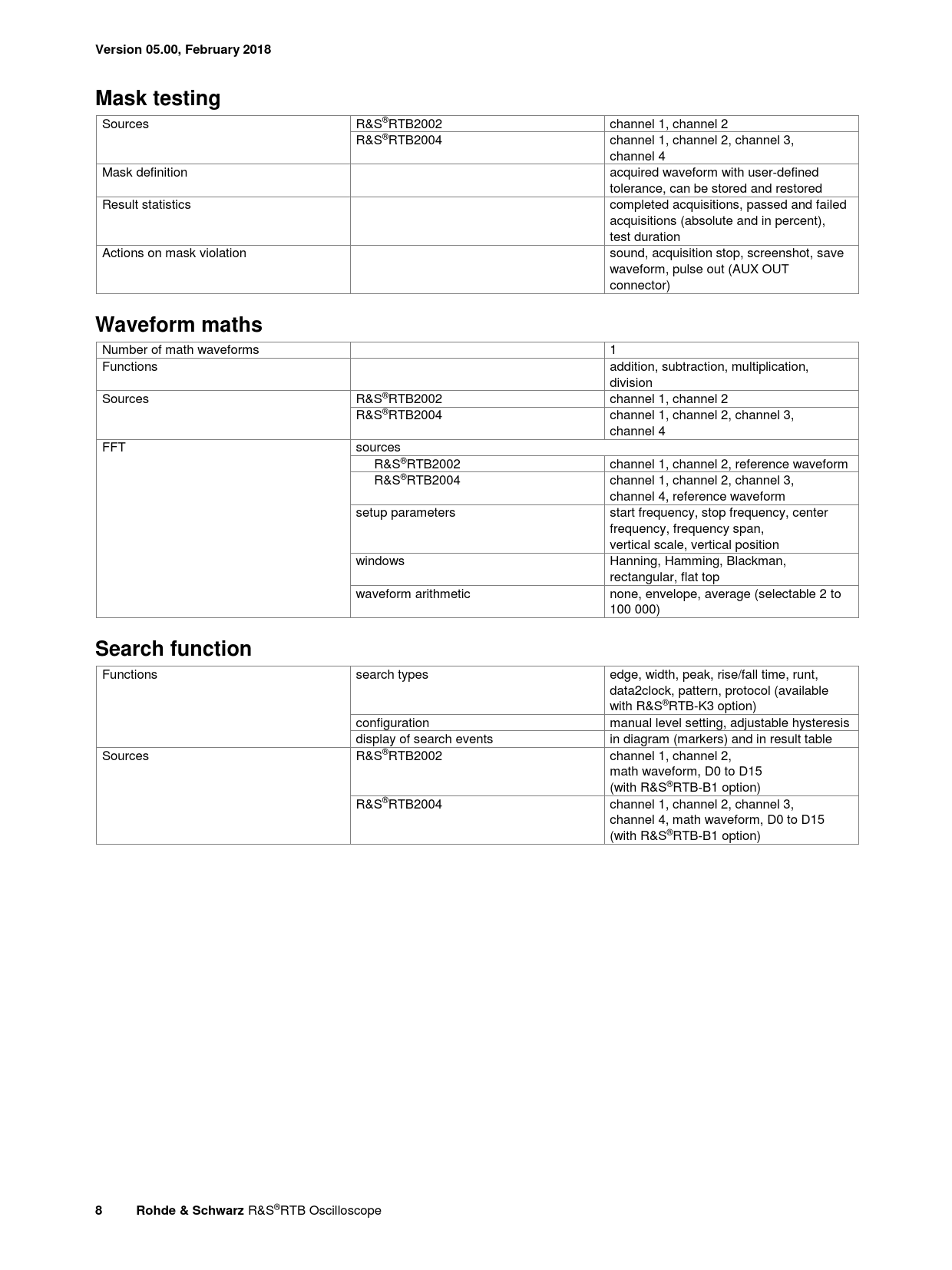 Version 05.00, February 2018. Mask testing. Waveform maths. Search function. Rohde & Schwarz