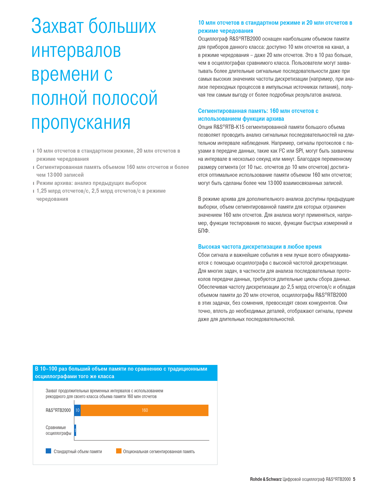 Захват. больших. 10. млн. отсчетов. в. стандартном. режиме. и. 20. млн. отсчетов. в. режиме. чередования. интервалов. Осциллограф. R&S®RTB2000. оснащен
