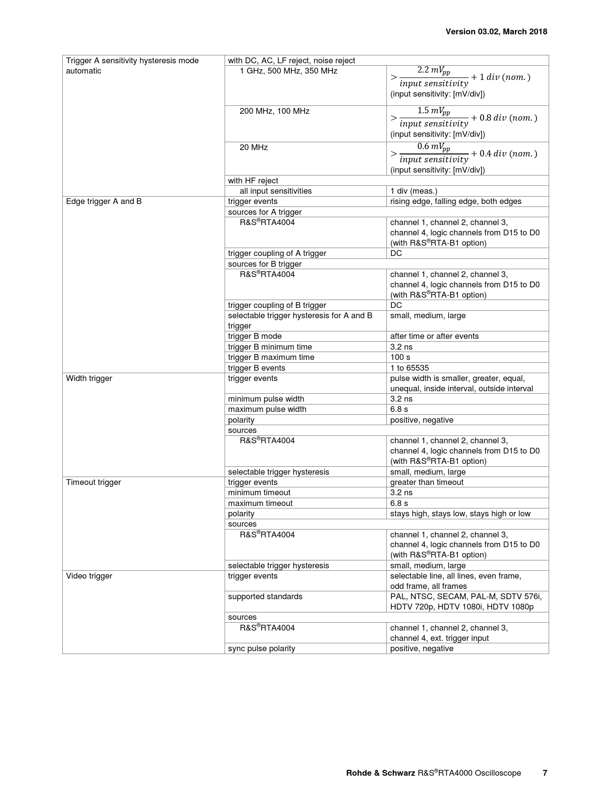 Datasheet RTA4000 oscilloscope (Rohde&Schwarz) - 7