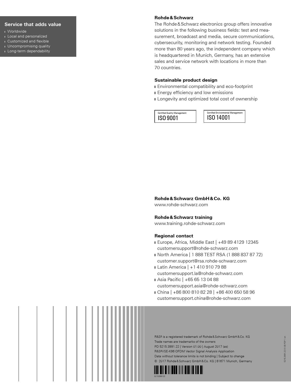 | Pages / Page | 8 / 8 — Rohde & Schwarz. Service that adds value. Sustainable product design. … |