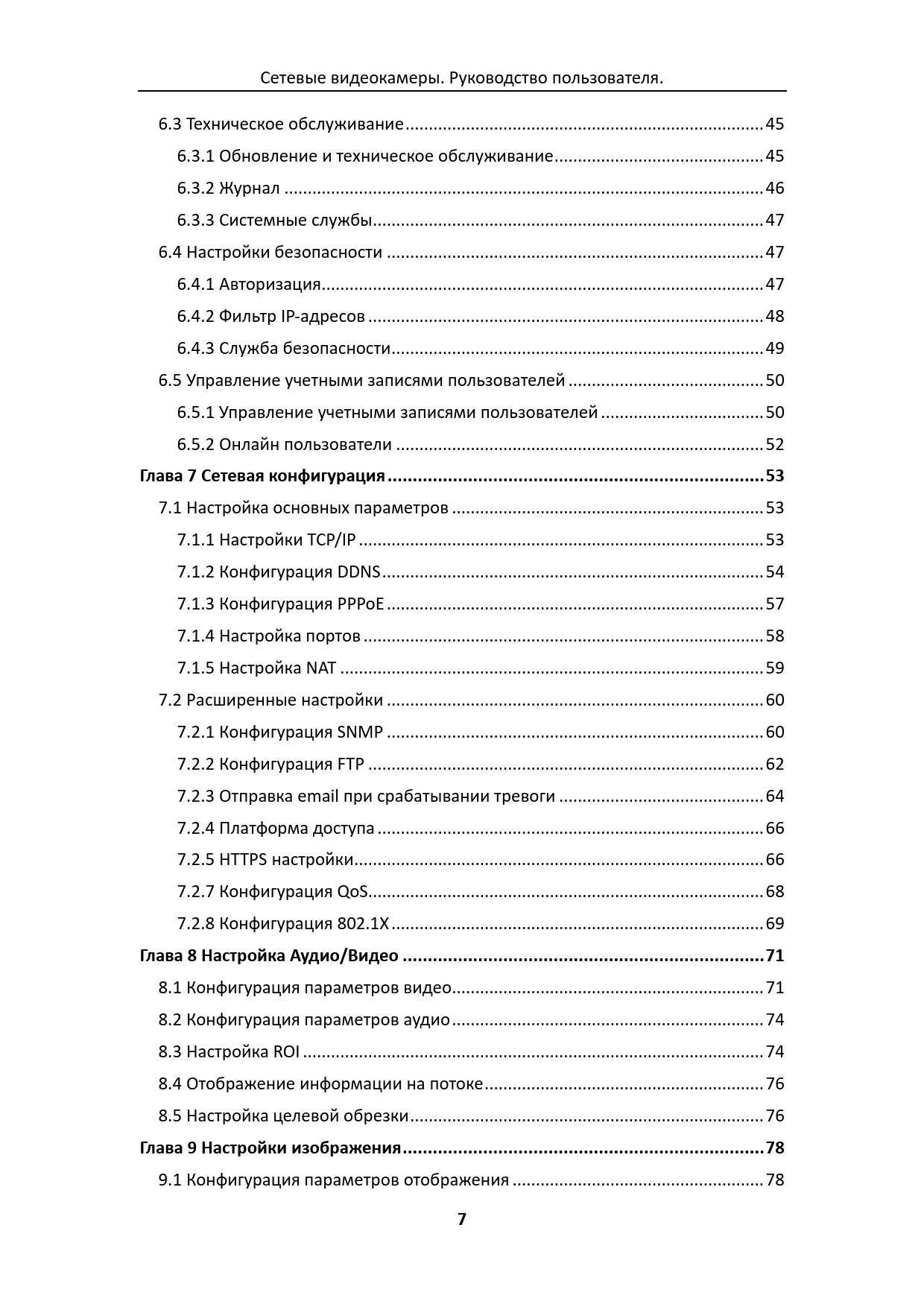 link to page 46 link to page 46 link to page 47 link to page 48 link to page 48 link to page 48 link to page 49 link to page 50 link to page 51 link to page 51 link to page 53 link to page 54 link to page 54 link to page 54 link to page 55 link to page 58 link to page 59 link to page 60 link to page 61 link to page 61 link to page 63 link to page 65 link to page 67 link to page 67 link to page 69 link to page 70 link to page 72 link to page 72 link to page 75 link to page 75 link to page 77 link to page 77 link to page 79 link to page 79 Сетевые видеокамеры. Руководство пользователя. 6.3 Техническое обслуживание ... 45 6.3.1 Обновление и техническое обслуживание ... 45 6.3.2 Журнал ... 46 6.3.3 Системные службы.. 47 6.4 Настройки безопасности ... 47 6.4.1 Авторизация ... 47 6.4.2 Фильтр IP-адресов ... 48 6.4.3 Служба безопасности .. 49 6.5 Управление учетными записями пользователей .. 50 6.5.1 Управление учетными записями пользователей ... 50 6.5.2 Онлайн пользователи ... 52 Глава 7 Сетевая конфигурация ... 53 7.1 Настройка основных параметров ... 53 7.1.1 Настройки TCP/IP ... 53 7.1.2 Конфигурация DDNS .. 54 7.1.3 Конфигурация PPPoE ... 57 7.1.4 Настройка портов .. 58 7.1.5 Настройка NAT ... 59 7.2 Расширенные настройки ... 60 7.2.1 Конфигурация SNMP ... 60 7.2.2 Конфигурация FTP ... 62 7.2.3 Отправка email при срабатывании тревоги .. 64 7.2.4 Платформа доступа ... 66 7.2.5 HTTPS настройки .. 66 7.2.7 Конфигурация QoS... 68 7.2.8 Конфигурация 802.1X .. 69 Глава 8 Настройка Аудио/Видео .. 71 8.1 Конфигурация параметров видео... 71 8.2 Конфигурация параметров аудио ... 74 8.3 Настройка ROI ... 74 8.4 Отображение информации на потоке .. 76 8.5 Настройка целевой обрезки .. 76 Глава 9 Настройки изображения .. 78 9.1 Конфигурация параметров отображения .. 78 7