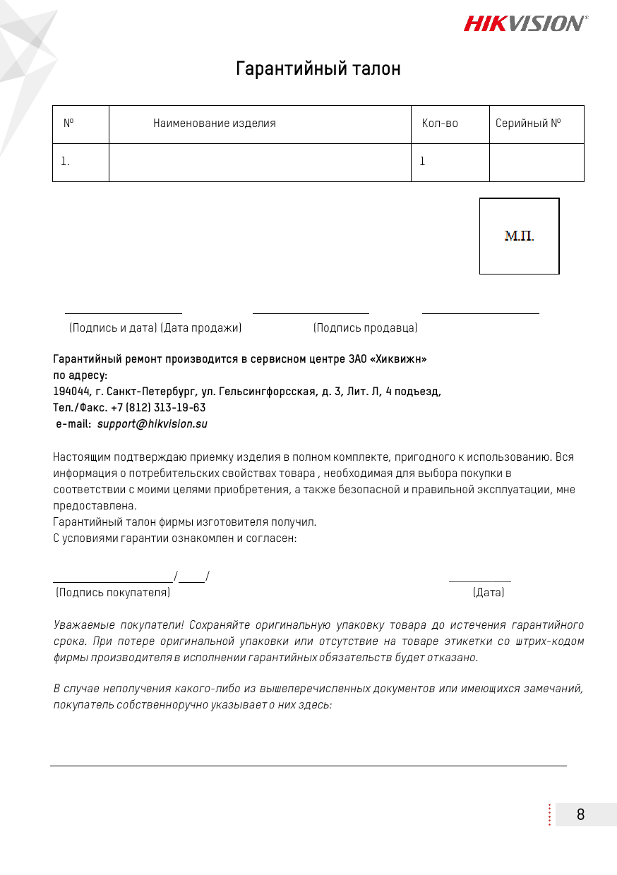 Паспорт изделия DS-2CD2432F-IW (Hikvision) - 8