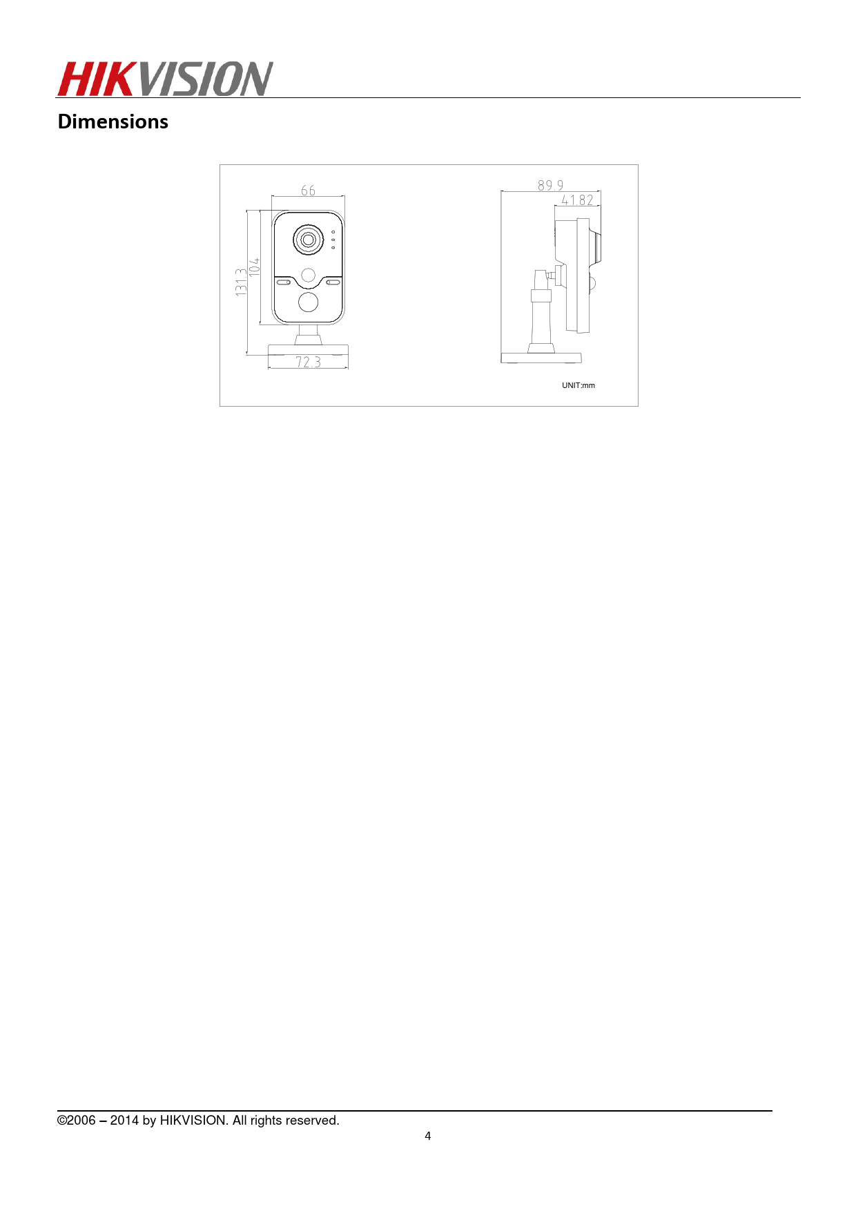 UNIT:mm ©2006 – 2014 by HIKVISION. All rights reserved. 4