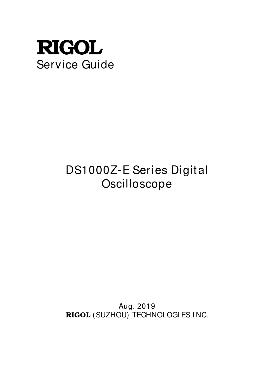Service GuideDS1000Z-E Series DigitalOscilloscopeAug. 2019RIGOL (SUZHOU) TECHNOLOGIES INC. Document Outline Guaranty and Declaration Safety Requirement General Safety Summary Safety Notices and Symbols Document Overview Disassembly and Assembly Notices to Disassembly and Assembly Exploded View Drawing Disassemble the Rear Panel Disassemble the Metal Rear Panel Disassemble the Knob Disassemble the Front Panel Disassemble the Keypad Board and LCD Disassemble the Main Board Assembly Procedures Troubleshooting&Maintenance Troubleshooting Maintenance System Maintenance Warranty Care and Cleaning Environmental Considerations