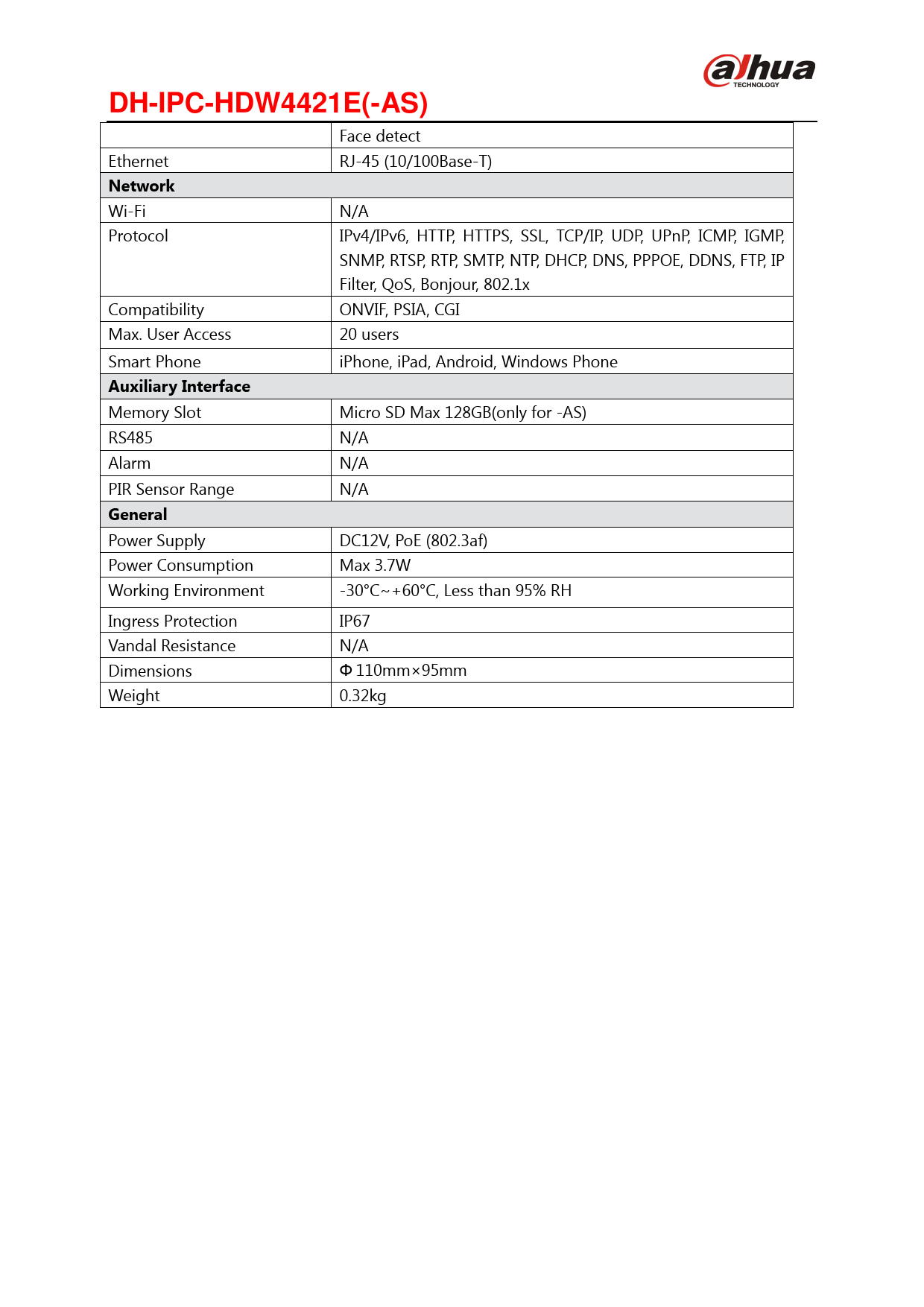 Datasheet DH-IPC-HDW4421E(-AS) (Dahua Technology) - 3
