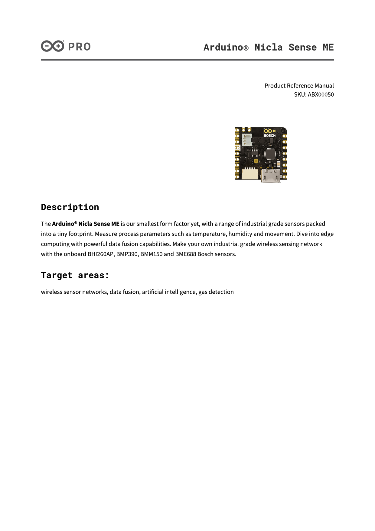 Datasheet Arduino Nicla Sense ME (Arduino)
