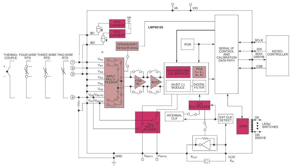 Figure 2. The LMP90100 24- bit configurable sensor AFE addresses a variety of design challenges inherent with temperature sensors. |