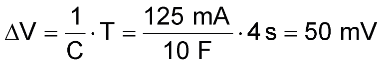 During sensor operation, the supercapacitor supplies load current. The supercapacitor droop per sample is: