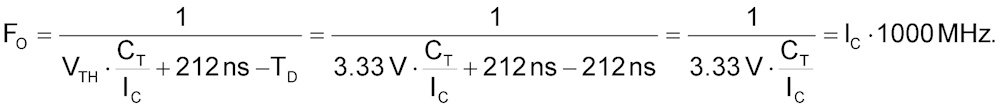 | Figure 4. | Frequency of oscillation nonlinearity is foregone and forgotten if RLIN = TD/CT = 212 ns/300 pF = 706 ohms. |