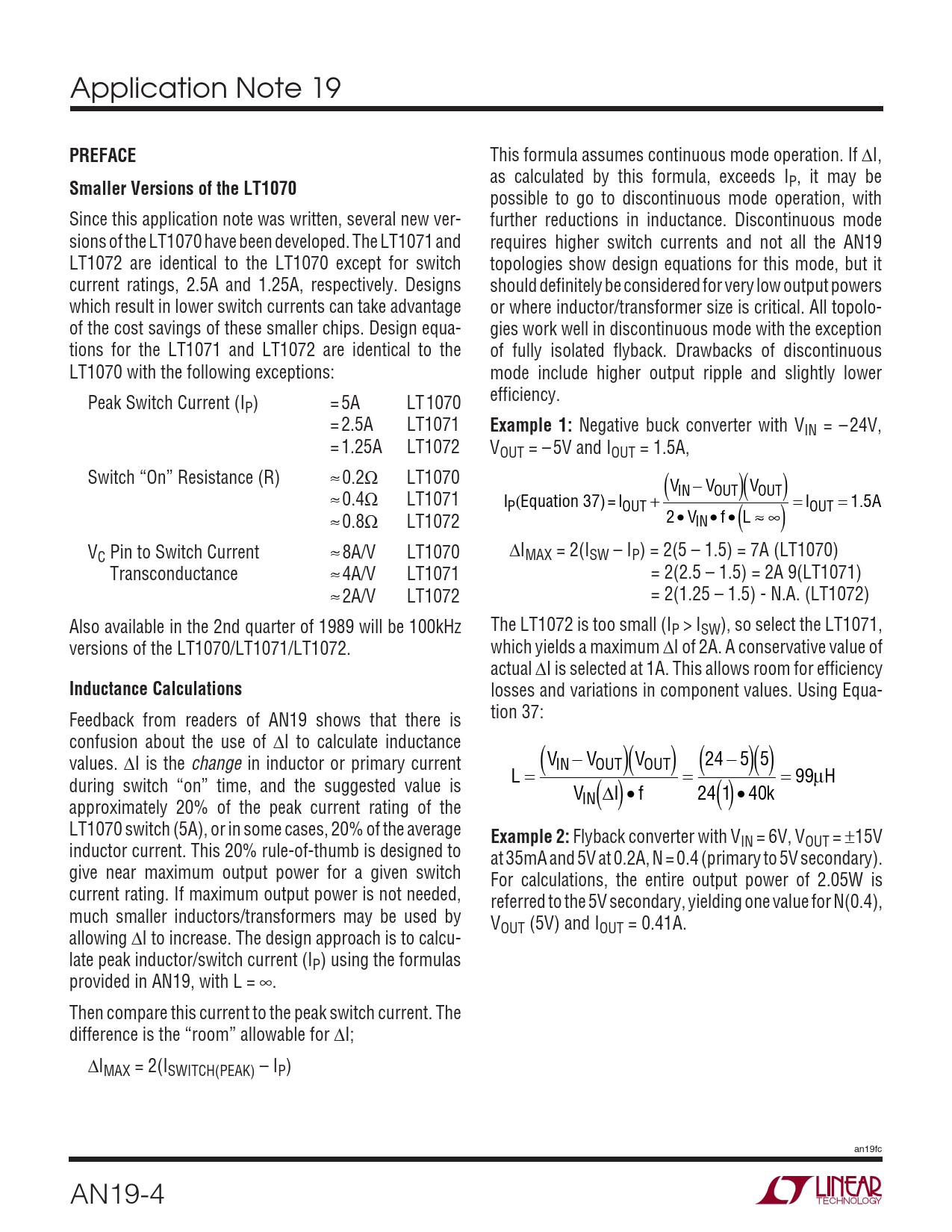 80 /4 — PREFACE. Smaller Versions of the LT1070. Example 1:. Inductance …