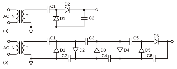 Figure 2. Single and multi-stage Greinacher multipliers