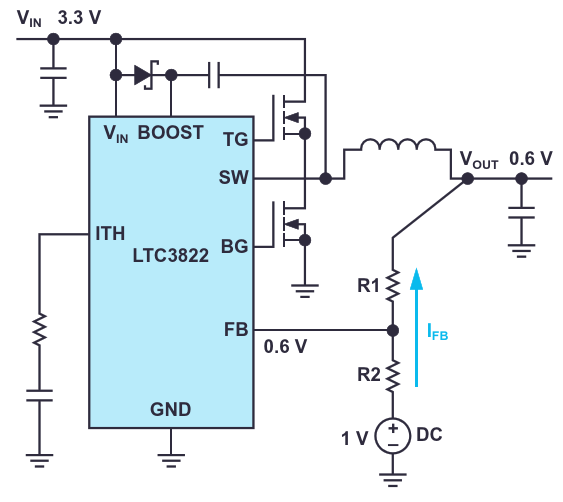 Figure 1. An LTC3822 dc-dc converter can be used to generate low output voltages down to 0.6 V