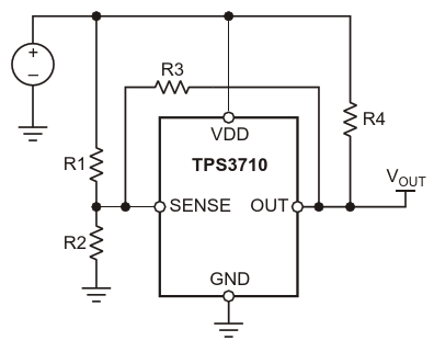 Figure 1. TPS3710 with resistors added for hysteresis