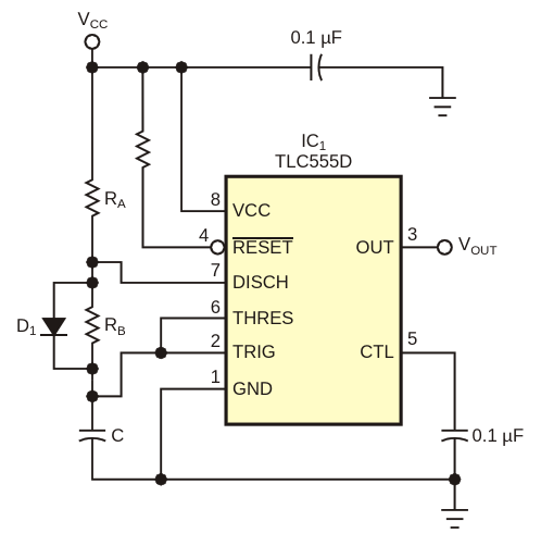 Figure 1. . This classic 555-based timer is valid only for duty cycles greater than 50%
