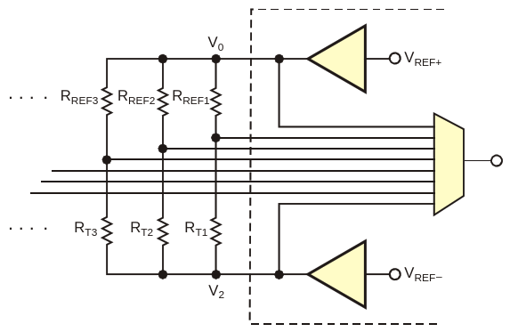 Figure 1. The resistive-divider topology provides a lower cost alternative to a current source and a precision resistor for calibration