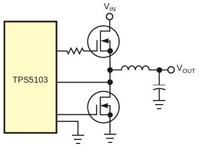 Figure 1. This classic buck regulator suffers from excessive negative phase-node voltage
