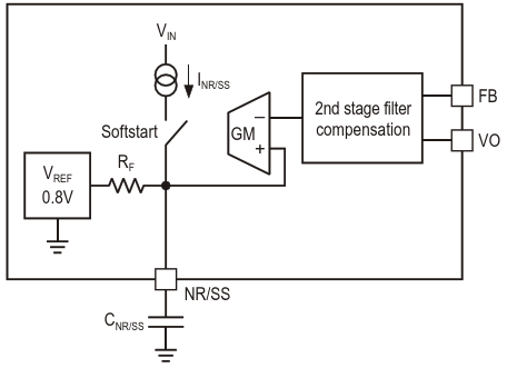 Figure 3. Low-noise buck block diagram with bandgap noise filtering
