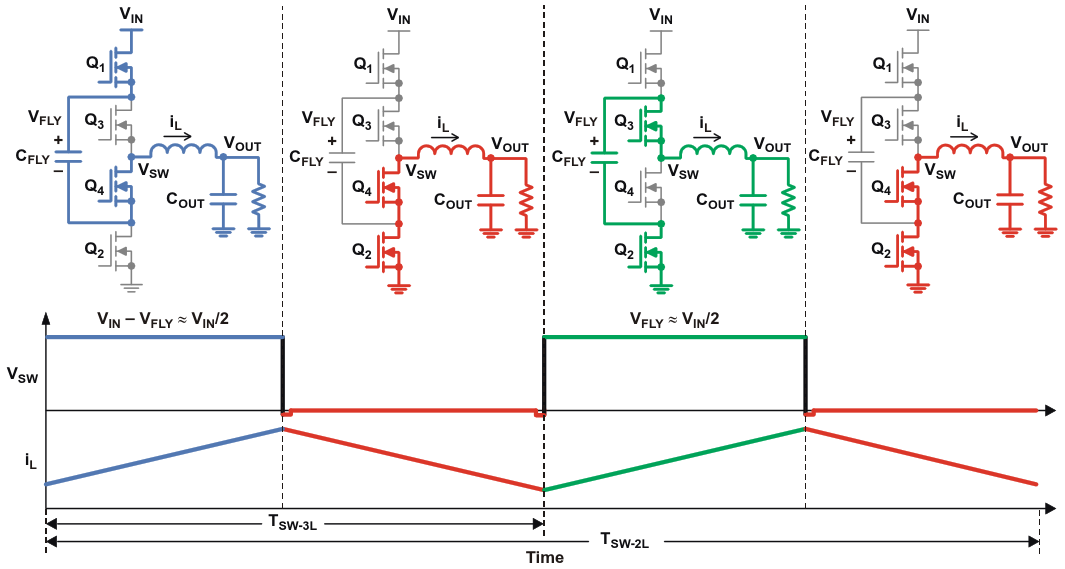 Figure 3. Three-level (3L) converter operation with D less than 0.5