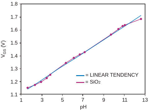 Figure 3. The gate-source voltage of an ISFET shifts with the degree of acidity