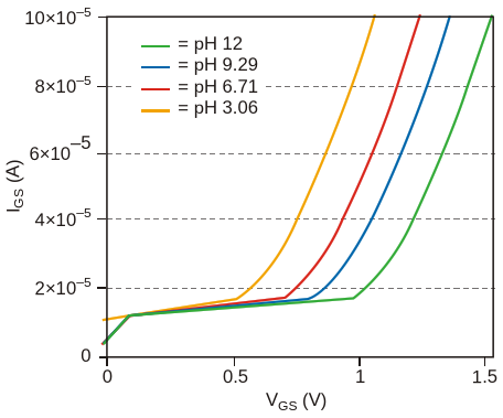 Figure 3. The gate-source voltage of an ISFET shifts with the degree of acidity