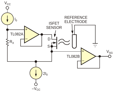 Figure 1. This circuit is a classic configuration for biasing ISFET sensors