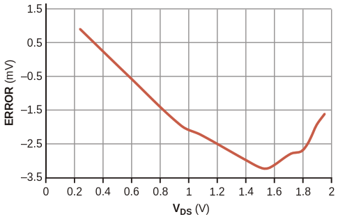 Only a few millivolts of error appear over the full range of V