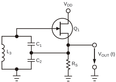 Figure 2. To complete the oscillator circuit, you add an LC-resonant tank to the amplifier stage; the result is a Colpitts oscillator
