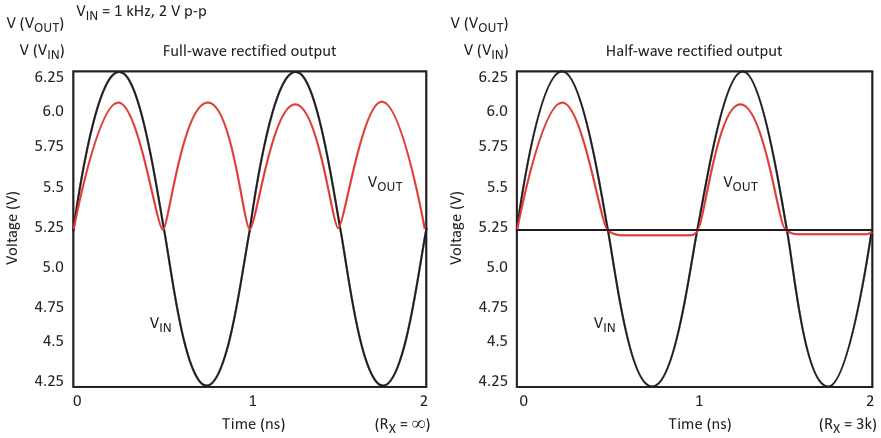 Figure 3. Measured waveforms verify the full-wave (a) and half-wave (b) performance predicted by the Spice analysis