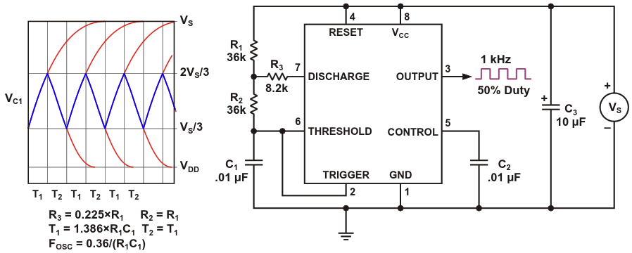 Figure 1. «Traditional two-resistor» 555 oscillator