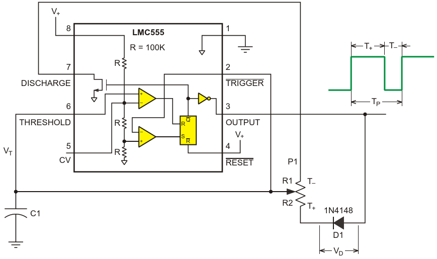 Figure 1. Diode D1 causes temperature dependence in this 555 timer circuit