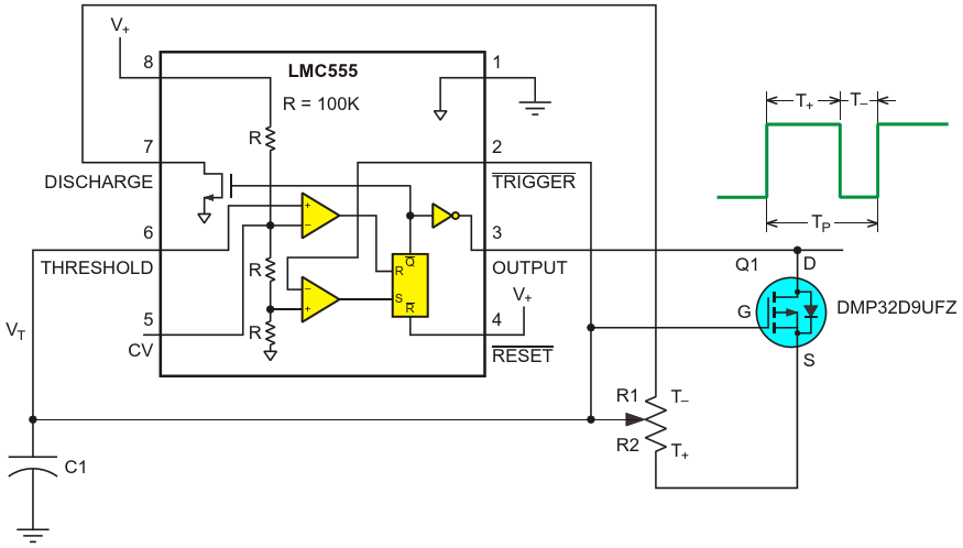 Figure 1. Diode D1 causes temperature dependence in this 555 timer circuit