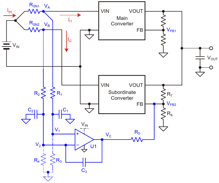Figure 1. In this current sharing control scheme, the subsidiary is forced to deliver the same load current as the main