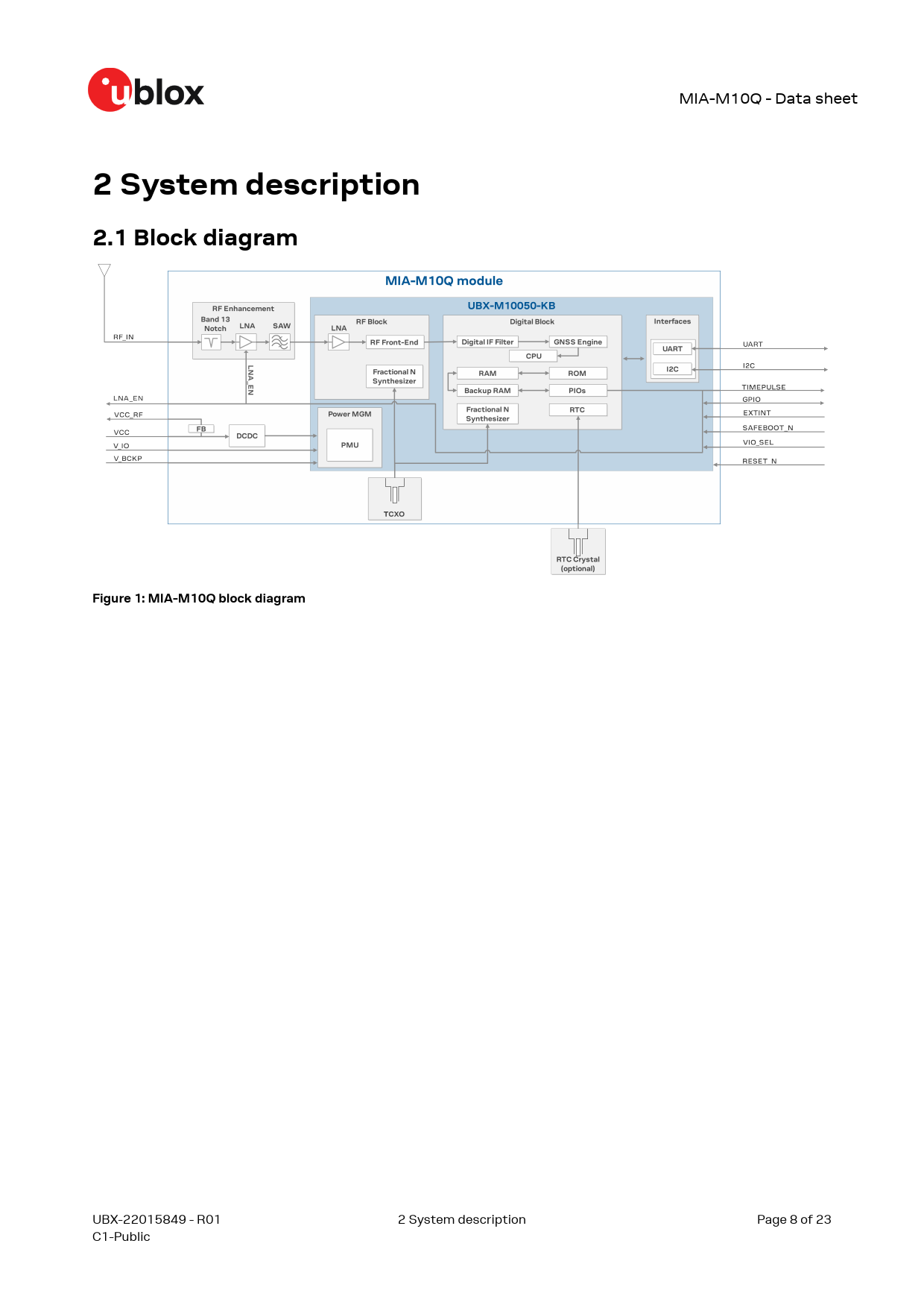 Standard precision GNSS module. Datasheet MIA-M10Q