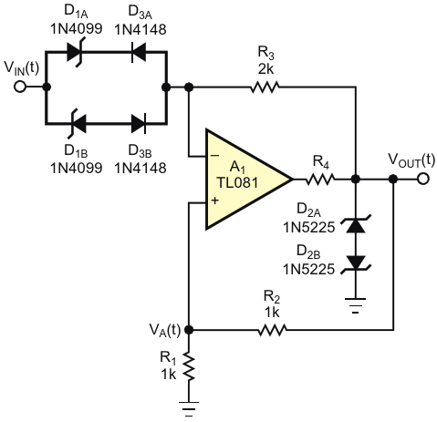 Single Op Amp Achieves Double-Hysteresis-Transfer Characteristic