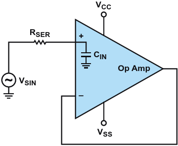 Figure 1. With a series resistor at the op-amp input, the input capacitance of the op amp can be measured