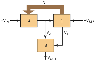 Figure 2. The example circuit uses only four switches within each DAC for clarity, but the number of switches can be increased for improved accuracy