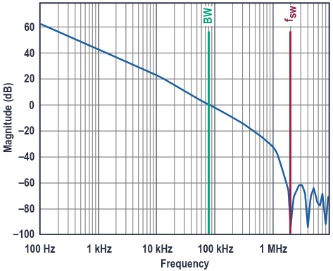 Figure 2. A Bode plot showing the gain of the control loop with a 0 dB crossover point at approximately 80 kHz