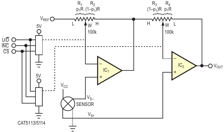 Figure 1. This circuit is a good sensor amplifier but suffers from a lack of variability
