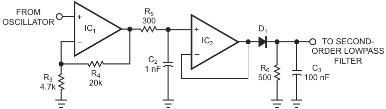 Figure 3. A second-order lowpass filter removes ripple from the envelope detector's output