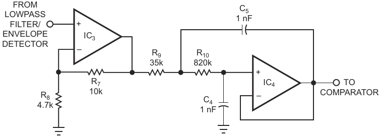Figure 3. A second-order lowpass filter removes ripple from the envelope detector's output