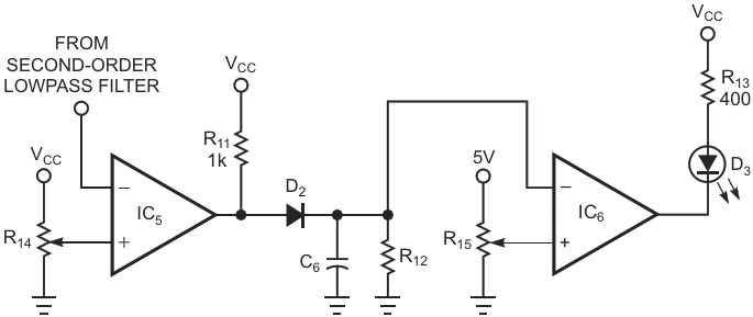 Figure 3. A second-order lowpass filter removes ripple from the envelope detector's output