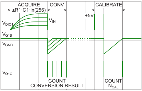 Figure 2. Acquire, convert, and calibrate phases of "free" ADC